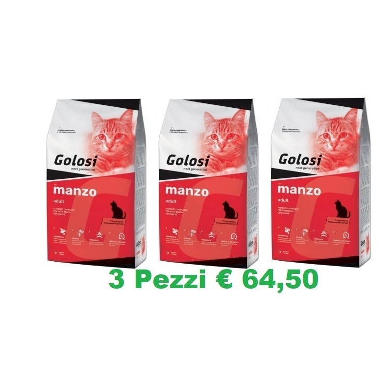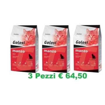 Golosi con manzo è la soluzione nutrizionale ideale per il gatto adulto: l’inclusione di manzo rende l’alimento particolarmente appetibile e apporta proteine a elevato valore biologico. Gli omega 3-6 e lo zinco sono validi alleati per pelle e manto mentre il selenio contribuisce a proteggere l’integrità dei tessuti. L’ampia integrazione di vitamine e minerali offre inoltre un importante supporto per l’organismo contribuendo a limitare i processi di ossidazione, per un gusto a tutto benessere.